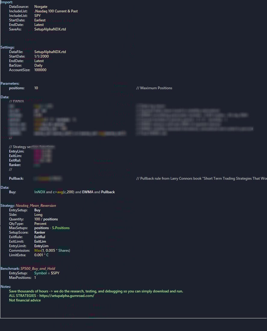 - Full code in .TXT file with RealTest code for the AmiBroker or Python users (Python users mostly convert this code to python with chatgpt. Need help, send email)