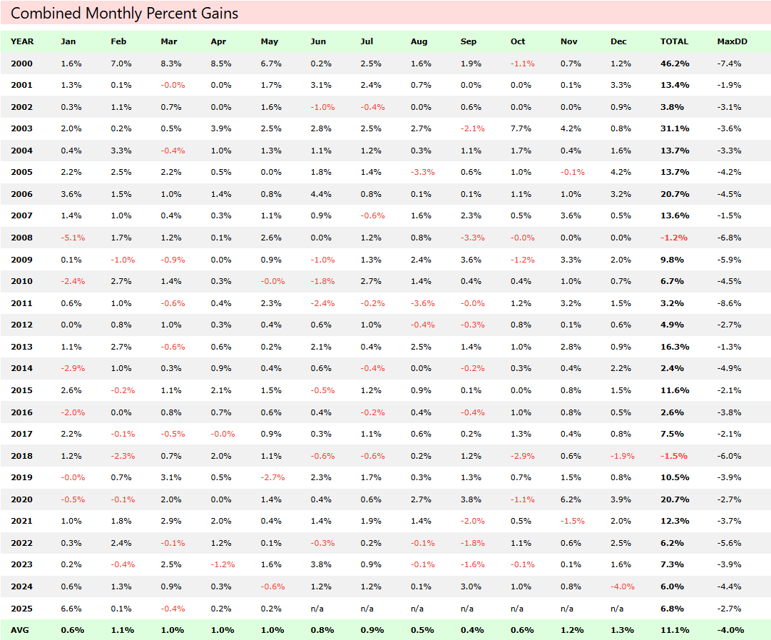 All results below include trading costs (broker commissions + limit extra buffert) to reflect real-life execution.
